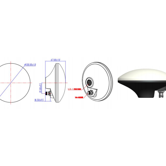 Frequenzbereich (MHz) BDS: B1, B2, B3 GPS: L1, L2, L5 GNONASS: G1, G2 Galileo: E1, E5a, E5b Spitzenverstärkung ≥ 5,5 dBi Polarisation RHCP VSWR ≤ 2,0 Axialverhältnis ≤ 3 dB Impedanz 50 Ω LNA-Verstärkung 40 ± 2 dB Horizontaler Abdeckungswinkel 360° In-Band-Flachheit ± 2 dB Rauschzahl ≤2,0 Phasenmitte ±2mm Betriebsspannung 3,0~12V DC Arbeitsstrom ≤50mA Anschluss MMCX Luftfeuchtigkeit 95% nicht kondensierend Lagertemperatur -45℃ bis +85℃ Betriebstemperatur -40℃ bis +80℃ Gewicht ≤130g